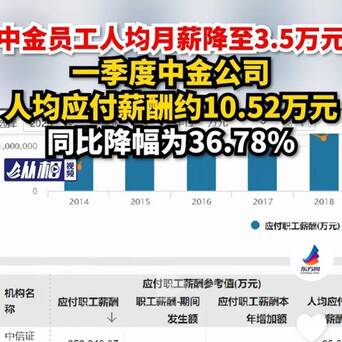 【谁都没想到,中金公司薪酬大降】根据媒体报道,中金公司2024年一季度人均薪酬大概为10.52万元,人均月薪大概降到了3.5万元,同比降幅达到了36.78%,这可能也是让很多人没想到了。